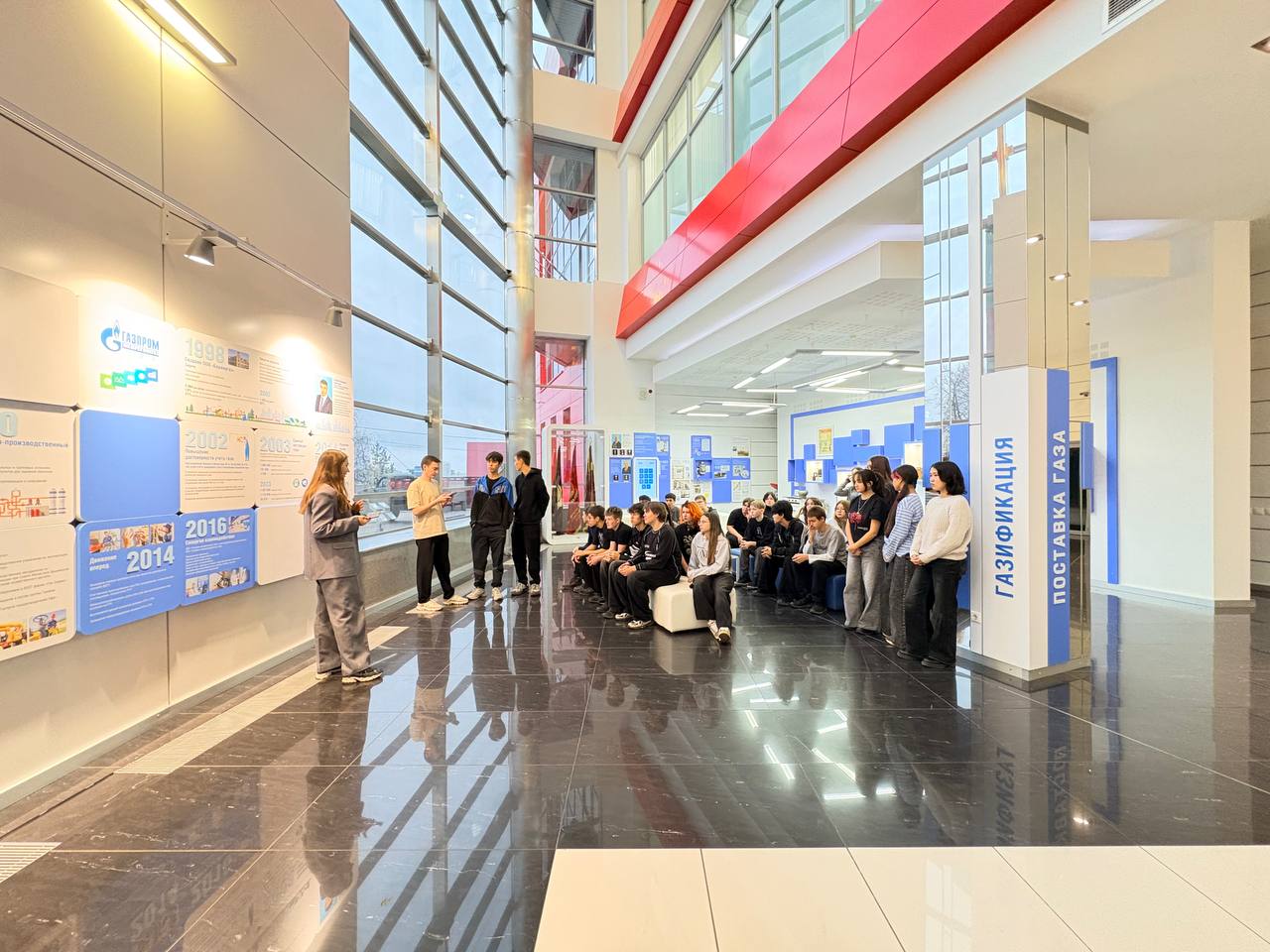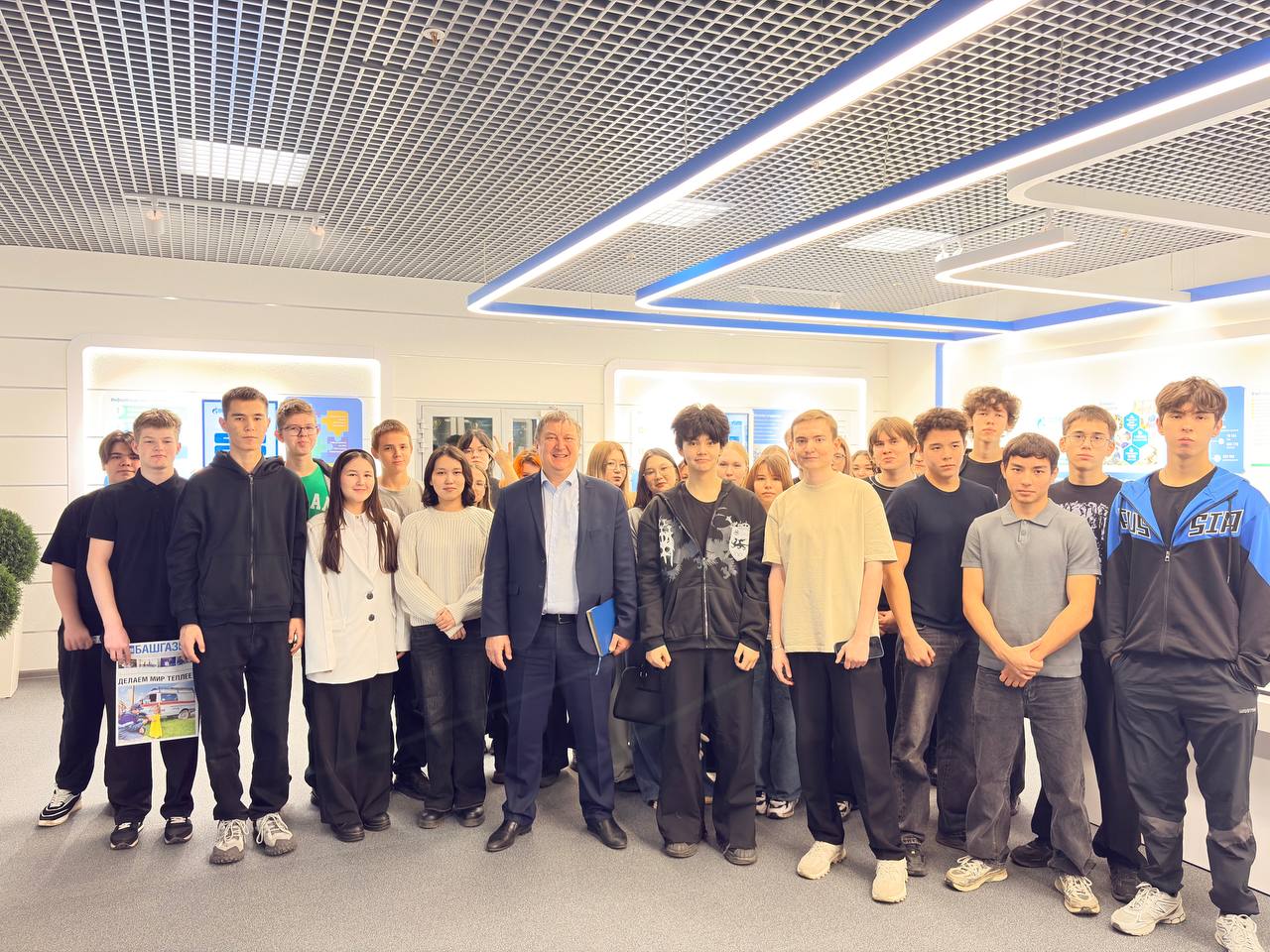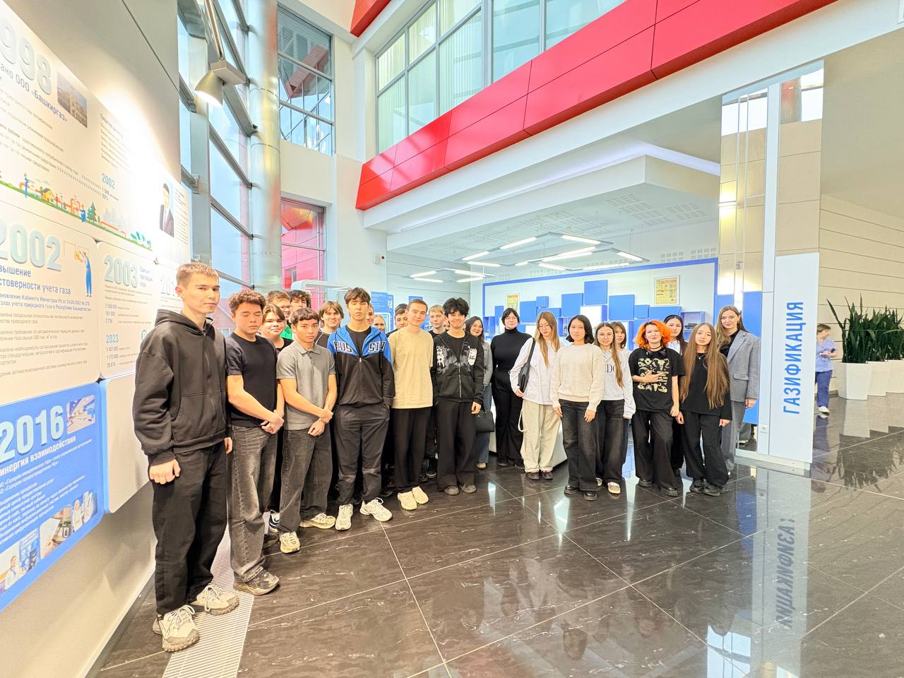 Экскурсия началась с посещения информационно-выставочной экспозиции, рассказывающей историю газификации Республики Башкортостан. Ребята смогли познакомиться с основными этапами формирования инфраструктуры газоснабжения региона и уникальными экспонатами, иллюстрирующими развитие отрасли.